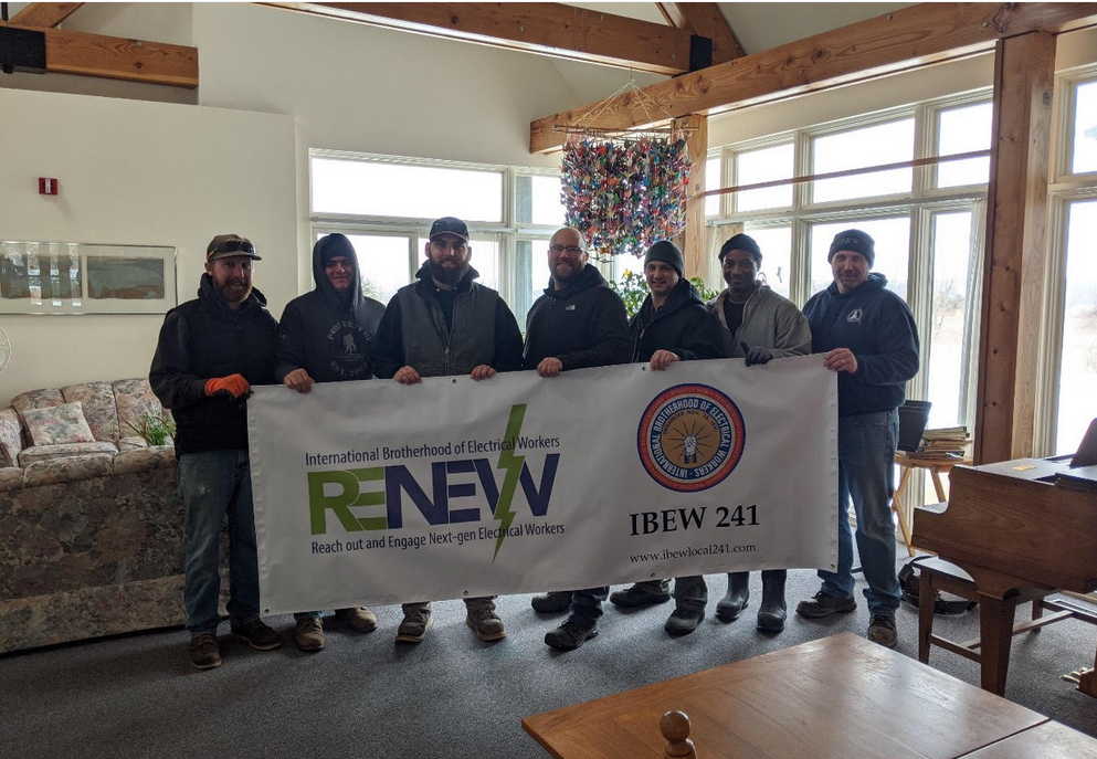 Local 241 members replaced the outside building lights with new LED lights and took down the Christmas lights they had put up earlier in the season.